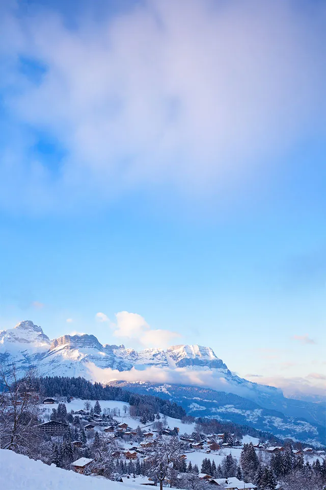Nestled in the Savoie Alps, Combloux is a charming ski resort known for being the “pearl of Mont Blanc” because of its stunning position next to Europe’s highest peak. This little community provides a peaceful environment ideal for families looking for a laid-back ski vacation, with its classic wooden chalets and farmhouses. Offering breathtaking views of Mont Blanc, the Aiguilles Rouges, and Aravis in all directions, Combloux offers an amazing setting for activities that include both skiing and non-skiing.